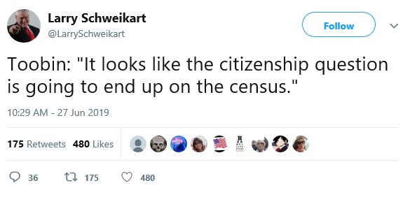 It looks like the citizenship question is going to end up on the census,” gloomily predicts CNN legal analyst Jeremy Toobin.