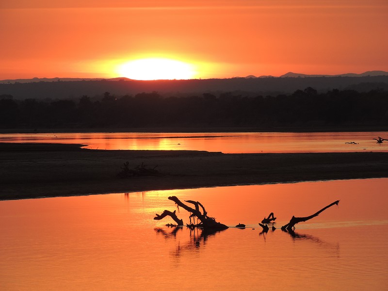 When your retreat calms him down, it’s time for a gin-and-tonic sundowner overlooking a river full of crocs and hippos.  What’s it like to enjoy this sunset while sipping that iced G&T?