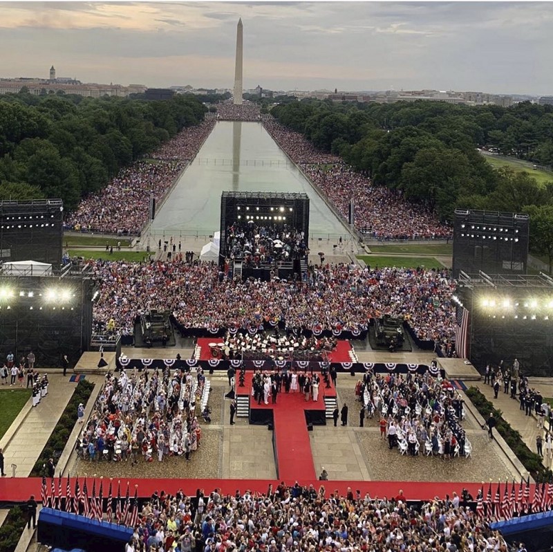 The President’s speech as a tribute to American history and the US military was spectacular. The B-2 Stealth bomber flies over at 28 minutes, and after the Marine Chorus sings the Battle Hymn of the Republic comes the Blue Angels flyover at the end.  Here it is entire: