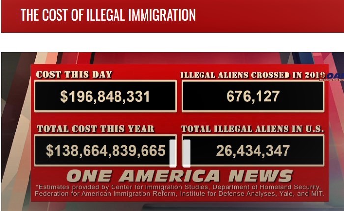 On the home page of One America News, you’ll see a running tally of The Cost of Illegal Immigration.  Here’s a screenshot taken this morning (7/05):
