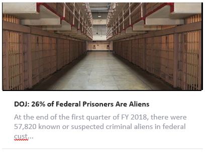 More than 20 percent of inmates in federal prisons in December, 2017, were non-citizens, of whom about two thirds were illegal immigrants, data from the Bureau of Prisons indicates.