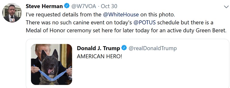 As the Daily Wire documents (10/30), the media’s idiot cake was taken by Voice of America’s Steve Herman who tried to spin it up into a serious scandal: