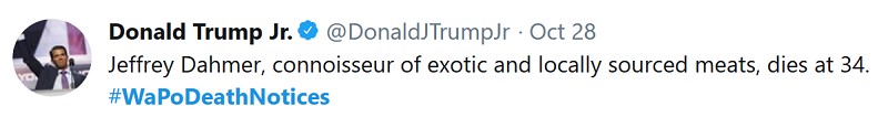 Even the lefty BBC couldn’t resist lampooning WaPo for calling Baghdadi an “austere religious leader,” then linking to the new Twitter site, #WaPoDeathNotices.  They’re funny – here’s DJTJr’s contribution. Enjoy.