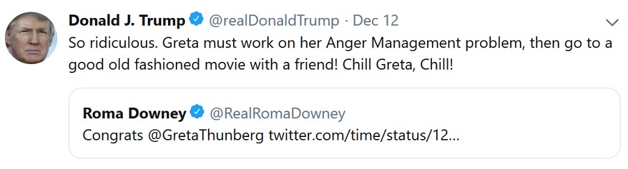 Second is TIME Magazine making a dementedly and ignorantly angry teenager Person of the Year for 2019.  Not the Hong Kong Protestors, nor Trump, or anyone of genuine global achievement, but some mindless child fruitcake spouting climate fascism.  Pathetically hilarious.