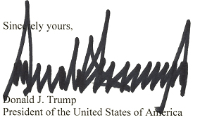 LETTER OF PRESIDENT TRUMP TO SPEAKER PELOSI