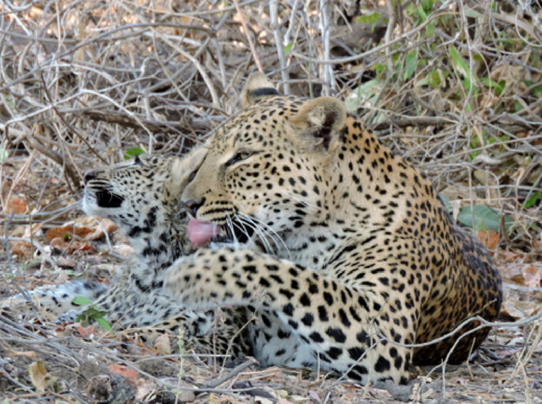 Or watch her as she gives her cub a loving tongue bath?