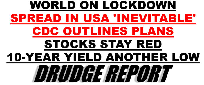 Drudge today is a perfect example — as is this Fox News’ panicky headline yesterday (2/24): Global Outbreak Causes Pandemic Fears After Cases Jump in Italy, South Korea and Iran – Dow Plunges 1,000 Points.