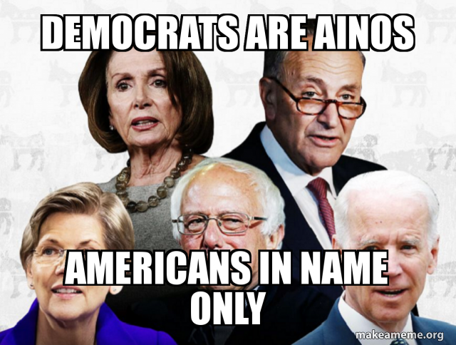 The Democrat Party has swung so radically left and has become so mortally infected with its self-administered Trump Derangement Virus it has become the AINO Party, the Ainocrats, Americans In Name Only.  They are rooting for the Wuhan Virus (wags now call it the WuFlu) to destroy the US economy so it will destroy Trump in November.