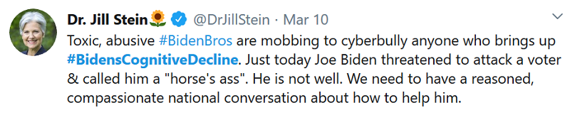 No wonder #BidensCognitiveDecline is hotly trending on Twitter now – and is being deluged with rabid Dementia Joe defenders.