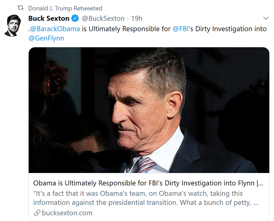Finally a presidential attack on Obama himself.  Not to mention going after Comey, but current FBI Director Wray, who has done absolutely nothing but protect the bureaucracy of which he is a life-long part from any investigation of wrong-doing whatever.
