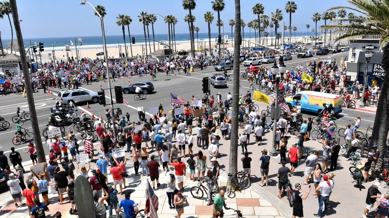 The picture you see above is of Huntington Beach in Orange County, California last Sunday (4/26), thousands joyously flaunting Gov. Newsom’s lockdown edicts in gorgeous warm weather.  You can be sure it will be the same this weekend as the temps will be in the 80s, and…