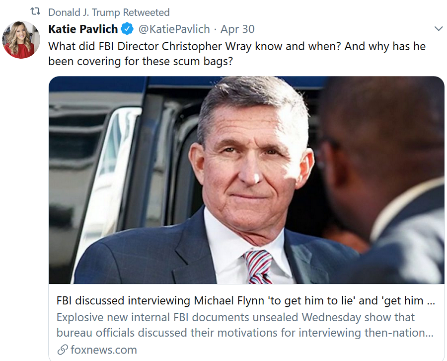 This is not only an exoneration of General Flynn, but setting up for a full disinfecting housecleaning of the mortally-compromised FBI from very top to bottom.  Can’t wait to see it for real.