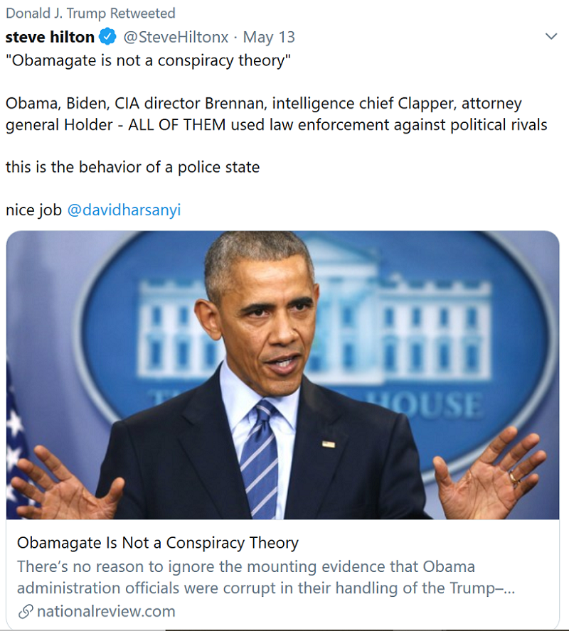 On Tuesday (5/12), we learned John Durham who leads the DOJ criminal investigation of Obama Admin crimes has a new nickname – “Full Throttle – per Fox News: Durham Moving ‘Full-Throttle’ on Russia Probe Review, Top Federal Prosecutors Involved.