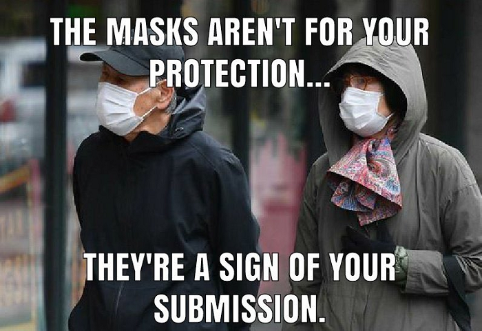 Mask-wearing is a constant reminder that we must continue to live in fear, we must stay afraid, we cannot live normal lives anymore.  People living this way is the Dream of Democrats, Fascists, Communists, all those on the Left who live for controlling the lives of others.