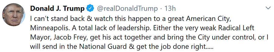 So Twitter censors the President of the United States for “glorifying violence” by wanting to reduce or stop the violence.  Makes perfect sense if you think there’s no way for him to enact his EO as it requires an Act of Pelosi’s Congress to do so.