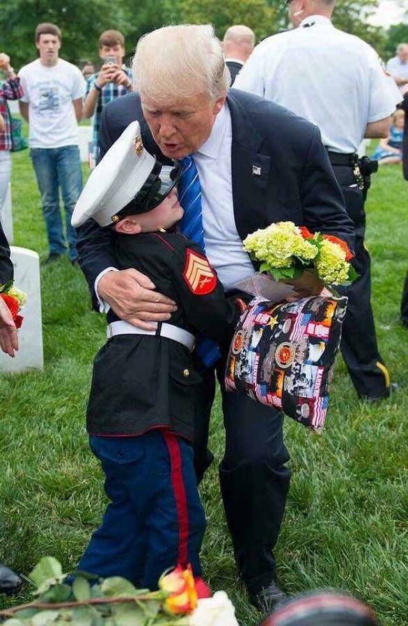 I also noted the extra time President Trump has taken, in private, to comfort the bereaved.  On Memorial Day at Arlington Cemetery in 2017, the President saw a 6 year-old boy, Christian Jacobs, grieving over the grave of his father dressed like the Marine his father was.  Taking time from his official activities, he hugged little Christian and told him his Dad was watching over him in Heaven.