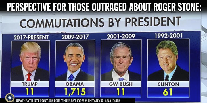 Jack Wheeler’s opinion, however, is that most normal people have hardly any idea who Roger Stone is and have far more important concerns in their lives than his fate – and when they see Dems going Full Freakazoid over his “commutation,” they shake their head and shrug.