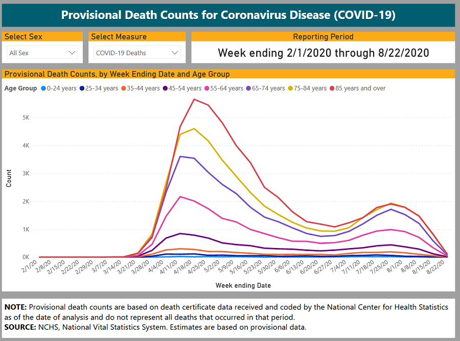 It lists the total number of deaths “involving” Covid-19 as 161,392.  6% of that is 9,684 – since February.  Add up all the deaths under 55 – 13,300 – 6% is 798 in the last six-plus months.  To compound the farce: “For deaths with conditions or causes in addition to COVID-19, on average, there were 2.6 additional conditions or causes per death.”