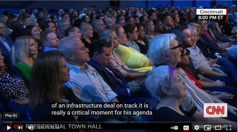 Ereyesterday, Wednesday July 21, CNN held a townhall in Cincinnati, Ohio for a man who claims he got 80 million votes last November.  CNN did everything it could to disguise the fact that the hall was mostly empty.