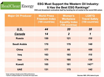 Clearly, then, the ESG divestment movement bears the ultimate contradiction: working to hurt Western oil companies on moral grounds while advancing the cause of some of the planet’s most repressive regimes.