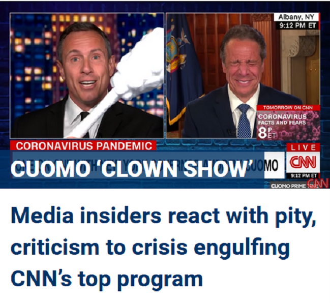 His brother is not just a jerk – he’s murderously evil, nicknamed for good reason “The Butcher of Albany” and “Governor Death.” Ereyesterday (8/04), The Onion satire site ran a marvelously brutal takedown of him: Cuomo Increasingly Desperate To Shift Focus Back Onto Nursing Home Deaths: