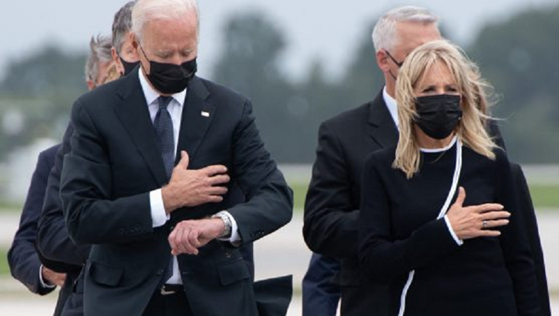 “’We did not want to deal with him. We did not want him anywhere near us,’ Darin Hoover, said father of Staff Sgt. Darin Hoover Jr.  Hoover felt disrespected to see Biden looking at his watch. ‘That happened on every single [casket] that came out of that airplane, Hoover said. ‘They would release the salute, and he would look down at his watch on every one. All 13’.”