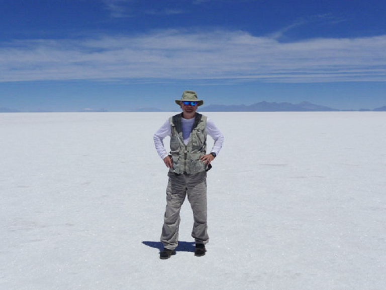 salar-de-uyuni-768x578_edtThe Salar de Uyuni, 12,000 feet high in the Altiplano of Bolivia, is a 4,000 square mile expanse of salt so flat it is used to calibrate the altimeters of NASA observation satellites of the earth. After a rain, it becomes the world’s largest mirror, 80 miles across. The incredible reflective surface extends to the horizon in every direction – it is both hallucinatingly disorienting and makes for amazing mirror-to-horizon photos (especially at sunrise/sunset).