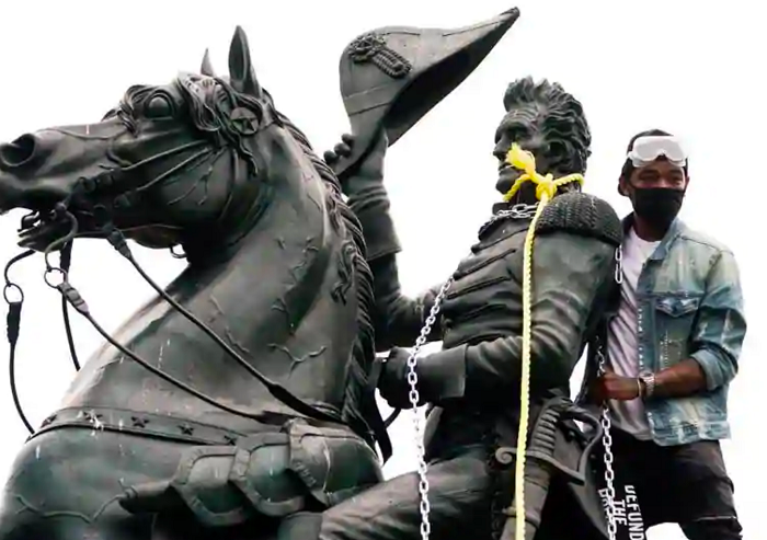 BLM/Antifa proto-hominids attack Jackson statue (6/22)