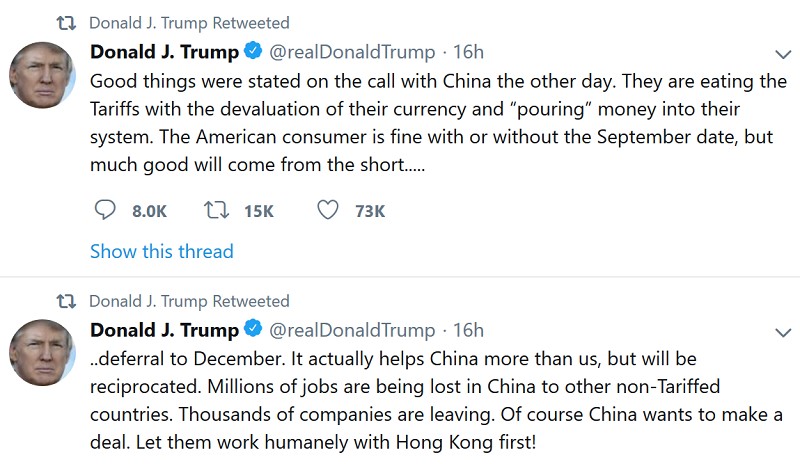 booming-economy-trump-tweet YIELDS FLASH RECESSION WARNING! BANK STOCKS SINK!  DOW DIVES!  These were the hysterical banner headlines on Drudge Wednesday morning (8/14).