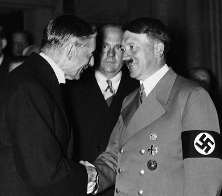 Even more serious is Angela Merkel rapidly becoming Putin’s Chamberlain. For the picture of Merkel fawning over Putin above certainly brings to mind the infamous British Prime Minister doing the same with Hitler in 1938: