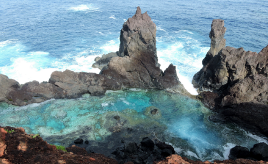 st-pauls-poolThis is St. Paul’s Natural Pool on Pitcairn Island, where in 1790 Fletcher Christian and his mutineers of the Mutiny on the Bounty settled, and where their descendants live to this day. They were awed by the uninhabited island’s lush beauty, with huge banyan trees rising above them like giant cathedrals, and thought it a Garden of Eden where anything grew, coconuts, bananas, taro, breadfruit, mangoes, guavas, passion fruit, yams and sweet potatoes in the rich volcanic soil.