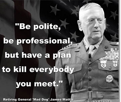 James Mad Dog MattisI’m amused by gossip breathlessly reported as news about who is being considered for key posts. As Lao Tzu said: “Those who know don’t talk. Those who talk don’t know.” We’ll find out when Mr. Trump makes an offer, and it is accepted. But there is one prospective nominee who, if he’s asked and accepts, would assuage most of my concerns about national security policy in the Trump administration.