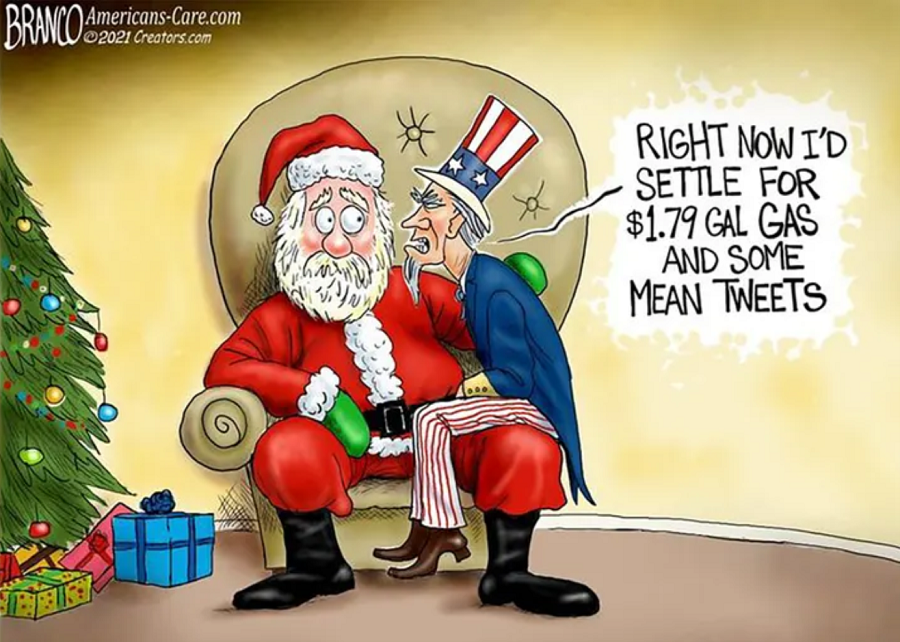 So much so, I believe it shows that this domination of our ruling elite embodying abnormalcy will soon come to an end. That’s why the Branco cartoon above is not an expression of Trump nostalgia, but of a growing public desire to see POTUS return to sweep away the lunacy of this last 12 months and Make America Sane Again.