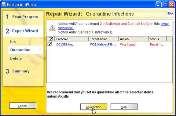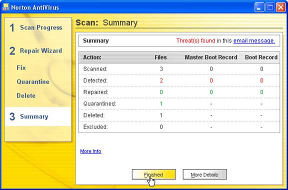 You can get more details by clicking any of the underlined blue text. After clicking Quarantine Norton gives you a summary of its actions.