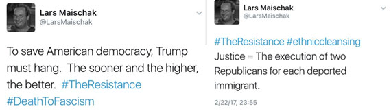 As well as Fake American journalist Cresencio Rodriguez-Delgado, whose article in the Fresno Bee (4/08) supported Maischak and brushed aside his call for murder as merely “expressing dislike for President Trump.”