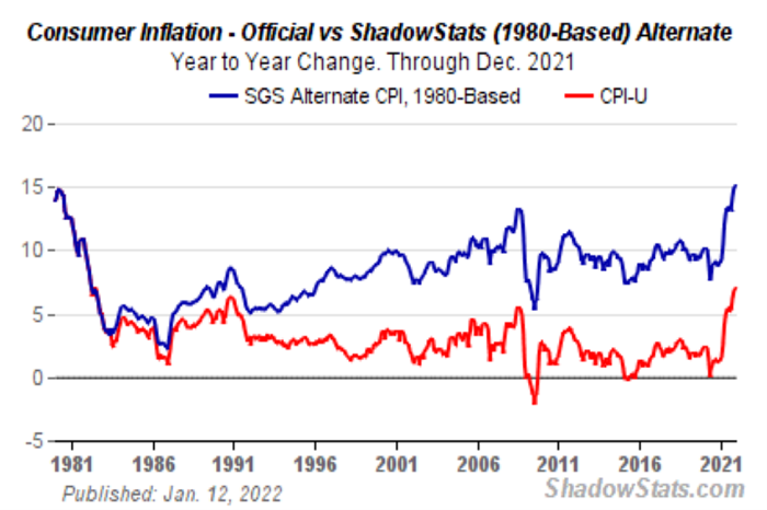 Ever since the early 1980s, the CPI (Consumer Price Index) has been progressively reconfigured with various gimmicks designed to understate real inflation of out-of-pocket/cost-of-living expenses in order to reduce cost-of-living increases in Social Security payments, federal worker paychecks and the like.