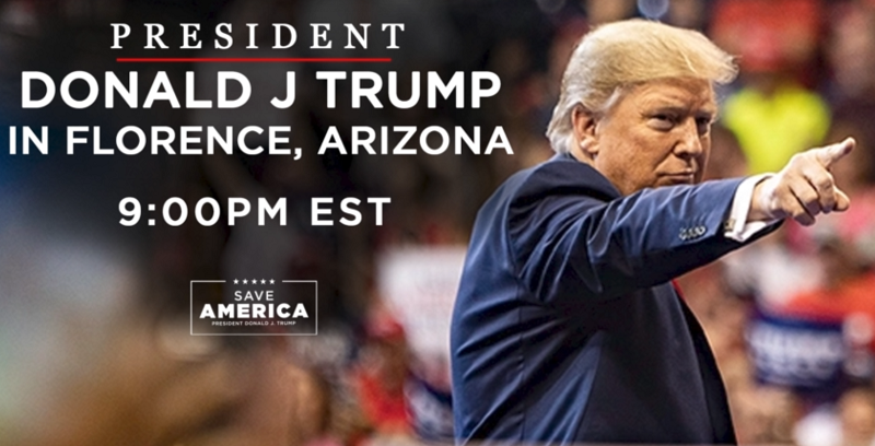 Florence is about halfway between Phoenix and Tucson. If you’re in the area, here’s how to get your tickets. Next Save America Rally will be in Conroe, Texas, just north of Houston, in two weeks, January 29.