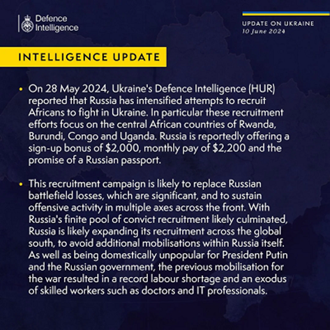 Think of what this means. He’s wasted the lives of over half a million Russians and can’t get any more for cannon fodder compost in Ukrainian soil. Now he has to pay Central Africans to die for him who have no military skills whatever beyond firing an AK-47. Desperation City.