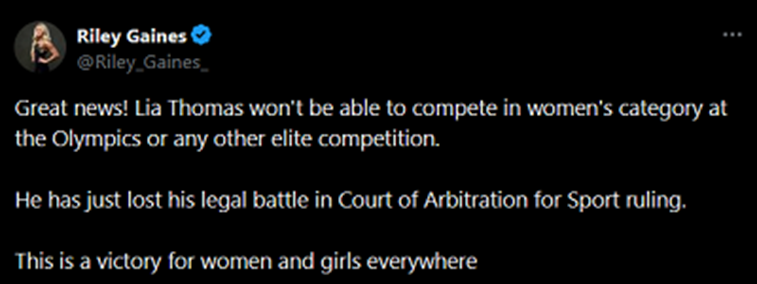 Riley Gaines brings us good news this week: