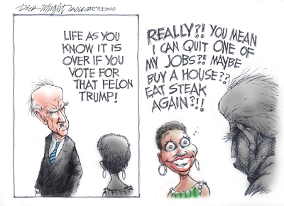In 2016, Hillary won the 18-34 vote by 16 points, Biden in 2020 by 24 points over Trump. Polls released this week shows he’s even or slightly ahead. It’s the same with other critical demos the Dems can’t win without, Blacks and Hispanics. The reason for this is simple: