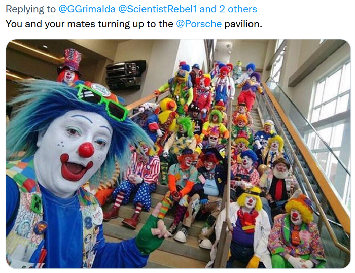 Ok, please be sitting down, put down any coffee or other liquid, and try to control yourself. On Wednesday (10/19), a group of eco-morons calling themselves ScientistRebel occupied the Porche pavillion adjacent to the Volkswagen plant in Wolfsburg, Germany: