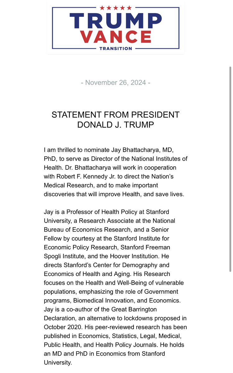 The person who launched their demonization was Francis Collins, Obama-appointed Director of the US National Institutes of Health (NIH), working in league with Anthony Fauci, Director of the NIH’s National Institute of Allergy and Infectious Diseases (NIAID). Francis and Tony, meet the new Director of the NIH: