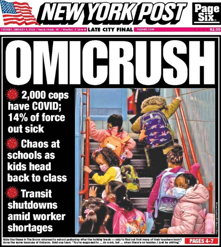 According to Fox5NY, 21 percent of the fully vaxxed NYPD were out sick last week. Outgoing Police Commissioner Dermot Shea said it was the highest level of sick employees he had ever seen.