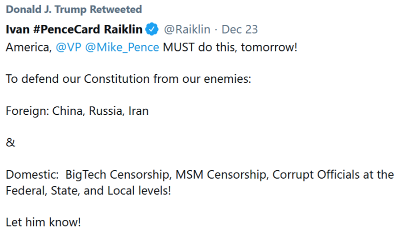 Yesterday (12/23), President Trump played “The Pence Card” with this tweet. Attached to it is a memorandum appended below.