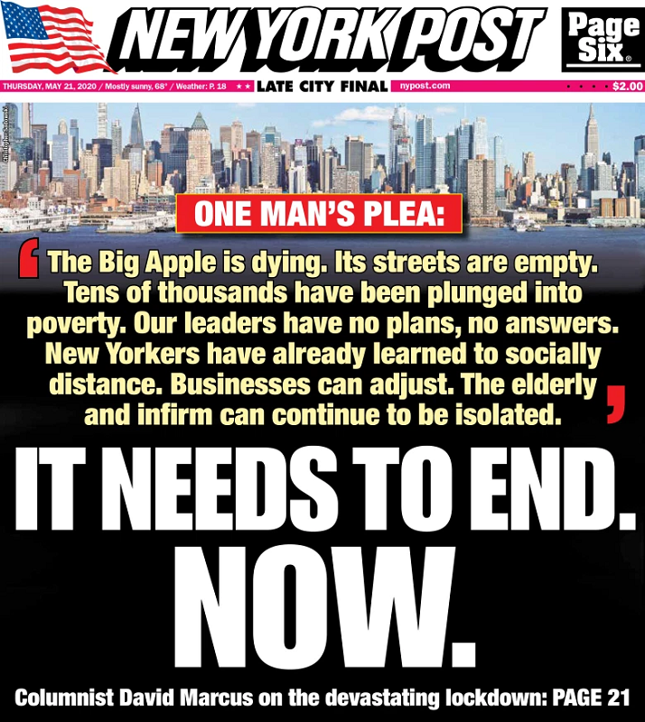 By prolonging the coronavirus shutdown long after its core mission was accomplished, Gov. Andrew Cuomo and Mayor Bill de Blasio have plunged tens of thousands of New Yorkers into poverty.