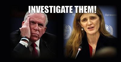 Two ominous tweets, one written by former CIA Director John Brennan, the other by former United Nations Ambassador Samantha Power, openly threaten a sitting president — President Trump. This must be investigated.