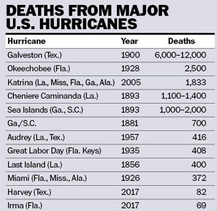Hurricanes Harvey and Irma were as powerful as the big South Florida hurricanes of 1926, 1928, and 1935, but the death toll was very small compared to the earlier hurricanes in the area, even though the population is now more than 10 times the size.