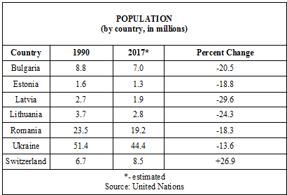 Vilnius, Lithuania. It is hard to succeed if everyone is leaving. Some of the former communist countries are suffering from a population death spiral, with double-digit population declines over the last 25 years, as can be seen in the chart.