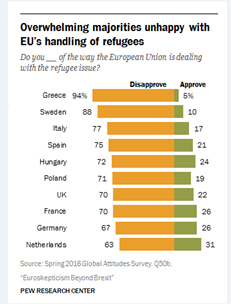 The Pew survey shows that dissatisfaction with the EU has risen to 49% in Spain and 48% in Germany, two countries normally seen as pro-European. This is roughly the same as in Britain, though different in character and less intense.