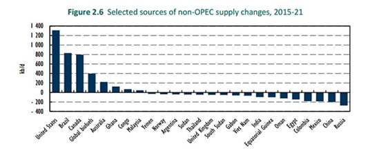 Russia is perhaps the biggest casualty, given that it is trying to fund a superpower military status and cover half its budget comes from oil and gas revenues. Its output will fall by 275,000 b/d as the old Soviet fields in western Siberia go into decline.